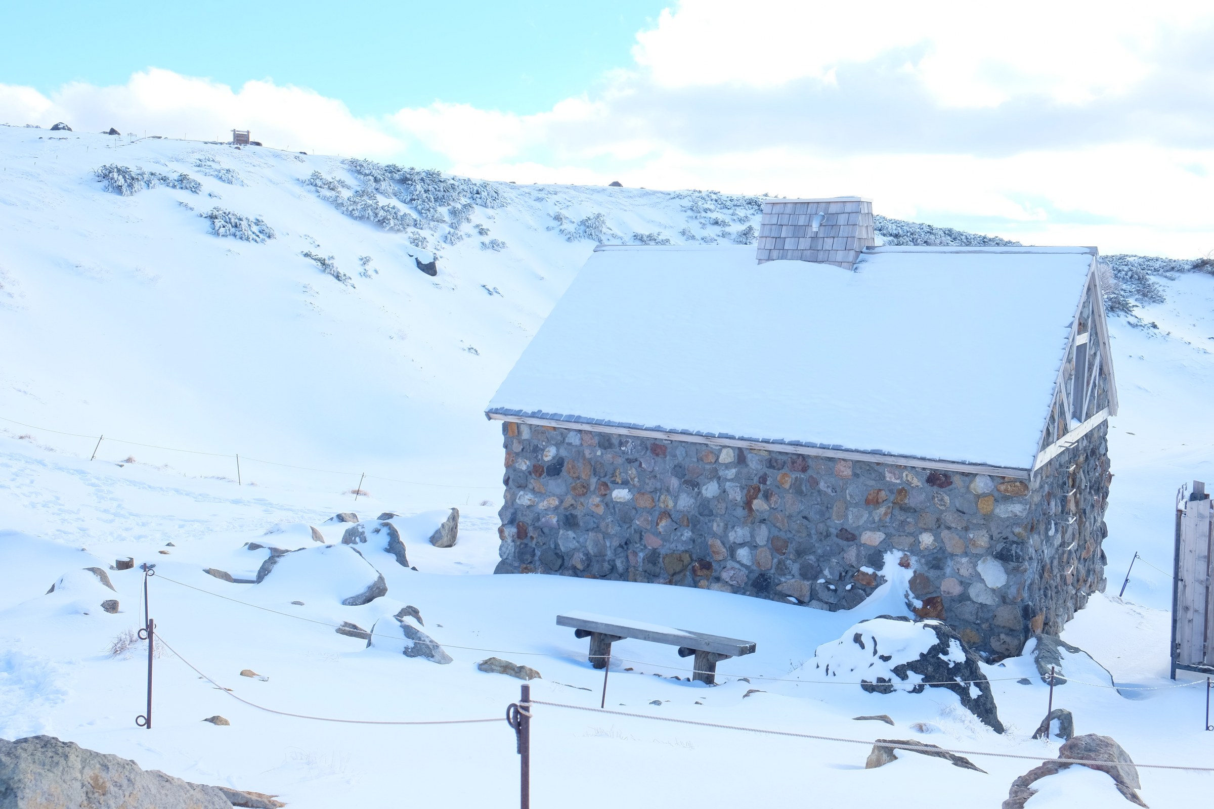 กระเช้าที่ขึ้นไปไม่มีคนเลย เนื่องจากส่วนใหญ่คนมักจะมาช่วงใบไม้เปลี่ยนสี กระเช้าก็เลยมีแค่เราสองคน เหมือนจองแบบ private มาเลย ดีจัง พอขึ้นไปถึง ทุกอย่างที่เห็นเป็นสีขาวโพลนไปหมด ต้นไม้ก็แข็ง หิมะเกาะหมดแล้ว แต่ว่ามันสวยมากๆ น่าตื่นเต้นที่จะได้เหยียบหิมะแล้ว